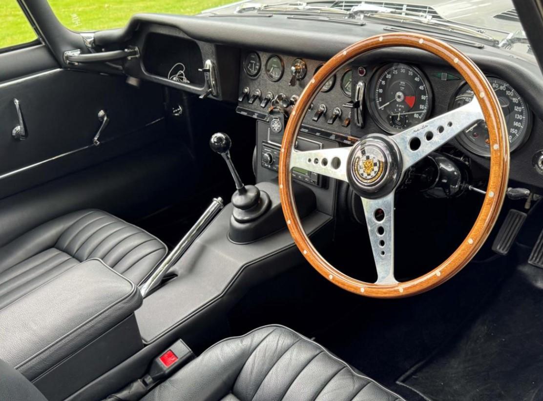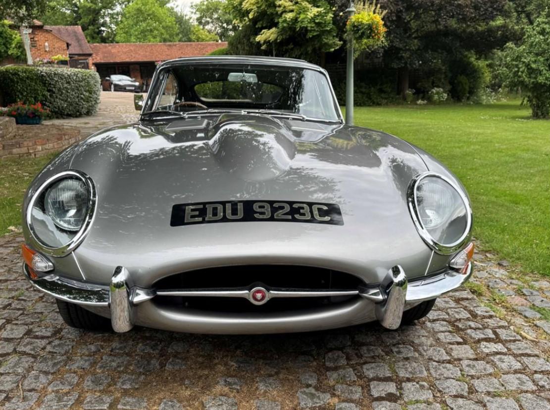 1965 Jaguar E type series 1 4.2 Fixed head coupe finished in Aston Martin in Sky Silver and tastefully trimmed with a perfect Black hide interior and the benefit of a full length Tudor Webasto Sunroof finished in black mohair. This is an original UK supplied example and the present owner commissioned the well-respected Jaguar restorers, Southern Classics to carry out a complete rebuild of this car back in 2011 to “Fast Road Specification”, mainly for the purpose of continental touring. This process included a full engine rebuild by Classic and Modern Engine services and enhancing the engine performance to include high compression pistons, a fully balanced crankshaft and con-rods and clutch assembly with further additional gas-flowing of the cylinder head, all of which has resulted in increased brake horse-power and low-down torque. The original 4 speed gearbox was also completely rebuilt which coupled with what we believe to be a high ratio rear axle has resulted a low engine revs when cruising at high speeds. The braking system was suitably improved with the use of Coopercraft brake calipers and an improved servo system. The original cast exhaust manifolds have been replaced with free flow stainless steel manifolds, coupled to a full stainless steel exhaust system . At the same time, the car was the subject of a bare metal repaint and a tasteful retrim in black leather. The car sits on slightly wider than standard stainless steel chrome wire wheels, shod with Avon Turbospeed radial tyres for improved road holding. With this beautiful and practical classic E type is a detailed history which records most of the vast expenditure over several years. Please call for a more detailed specification. One of the very best available at £120,000