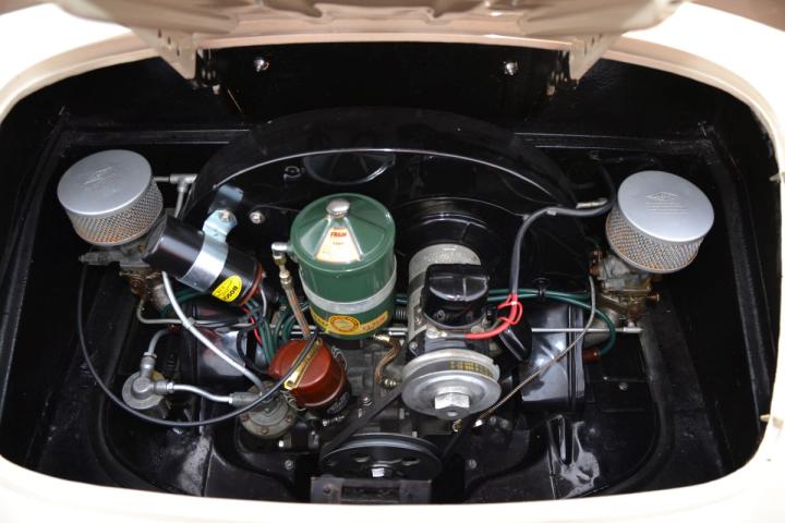 In February 1954, the Porsche was registered by Hoffman, the well-known dealer in New York. In the late 1980s, the car was expertly restored in Italy, both mechanically and in terms of bodywork. This is evident in the exceptionally precise panel fit. The 1500 engine is of the correct type and has been built to the proper specifications. In 2018, the interior and soft top were restored according to Reutter’s Farbmusterkarte (included with the car), and minor imperfections were addressed.