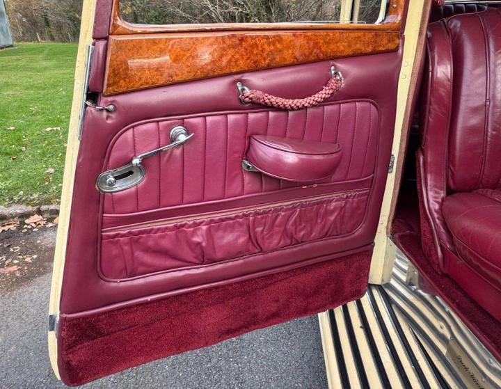 A very well-specified example, with a plethora of extra instrumentations & switches on the dashboard, twin fuel fillers, twin side-mounted spare wheels and various other deviations from ‘standard’. Originally built for Geoffrey Smith, managing editor of ‘The Autocar’ magazine & specified with many extras, well documented in various publications, including mentions in four different editions of ‘On the Road’, the contemporary magazine produced by Bentley in the thirties. The history file with the car has copies of some of these, together with other documentation, handbook, etc. The car is in good all-round condition, with a very impressive frontal appearance, with its selection of lamps & horns. Driving well, sounding good, and looking very handsome in two shades of cream, with red double pinstripe & red leather interior. Offered MoT tested.
