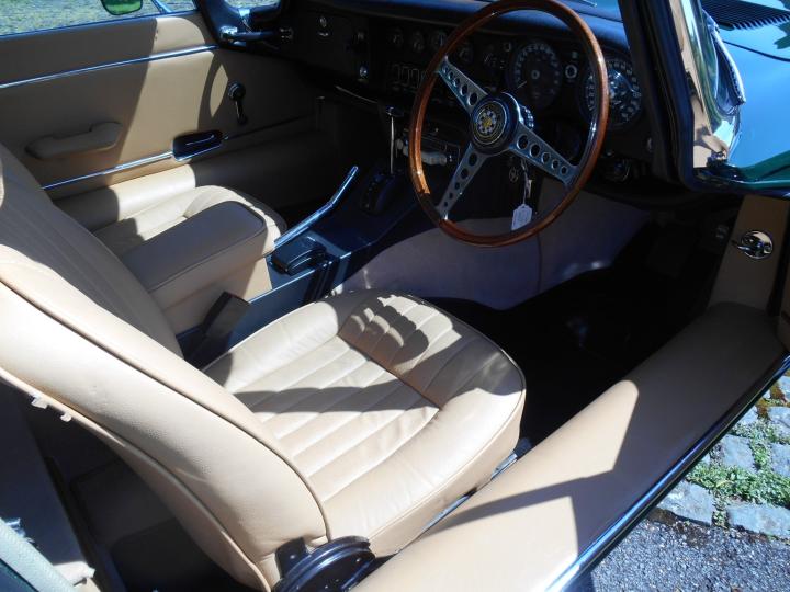This classic 1972 Jaguar E-Type SERIES 3 V12 Automatic is Finished in the Rare Colour Scheme ,from New, of BRITISH RACING GREEN with contrasting TAN LEATHER TRIM with a Black Soft Top and COMES WITH A FACTORY DETATCHABLE HARD TOP finished in the matching British Racing Green which was also supplied when the car was new, Along with CHROME WIRE WHEELS. The Car has ONLY had 4 PREVIOUS OWNERS from NEW , the LAST OWNER for 9 YEARS ( Since 2015 till 2024) and the Owner prior to that OWNED the CAR from 1980 UNTIL 2015 (35 Years) . When the Last owner purchased the car in 2015 he had the car inspected by Miles Classic of Huddersfield which we have the report that states what a good sound original car it was but the paint had faded slightly due it being 43 years old at that time. So having purchased it he asked Miles Classic to set about giving the car BARE METAL RESPAY and to completely Recommission the car with many Upgrades which COST in EXCESS of £40,000. The CAR COMES with PAPERWORK & PHOTOGRAPHIC HISTORY DATING BACK to 1974 with ALL OLD MOTs and Copies of OLD LOG BOOKS and a letter from the OWNER in 1980 That confirms the Ownership and mileage at that time .The work carried out by the last owner is to extensive to list here so please ring for the full outline of the work and upgrades carried out. This is a very nice and well sorted example and an absolute pleasure to drive.