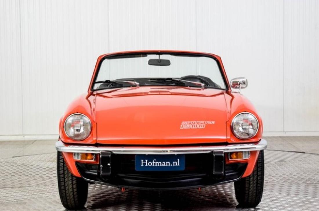 In uitzonderlijk goede en gave conditie verkerende Triumph Spitfire uitgevoerd met de krachtige 1500 techniek. Enkele jaren geleden is dit exemplaar gerestaureerd in Nederland en ook de techniek is grondig aangepakt. De body verkeert in een zeer strakke staat en is fraai gespoten. Interieur keurig en fris met mooie lederen bekleding. Tijdens de restauratie is de onderzijde van de Spitfire behandeld en netjes afgelakt in de chassis kleur. Zeer recent nog is er een nieuw roestvrijstalen uitlaatsysteem gemonteerd. Momenteel is deze Triumph voorzien van een Duitse registratie, uiteraard kunnen wij deze wagen aan u leveren met een Nederlands kenteken. -DEUTSCH; Super Zustand Triumph Spitfire mit kräftige 1500 Techniek. Der Wagen ist ordentlich restauriert in Holland. Dieses Spitfire läuft und fährt phantastisch und hat Deutsche Papiere und H-Zulassung. Bedrijfsinformatie: Prijswijzigingen, druk- en zetfouten voorbehouden. Altijd ruim 500 auto's op voorraad, check de actuele voorraad via www.hofman.nl. Volg ons ook op facebook.com/HofmanLeek. Bel ons voor de mogelijkheden voor inkoop, verkoop, consignatieverkoop en stalling. * Veilig online kopen @ hofman.nl * Levering aan huis mogelijk * Inruil mogelijk. Al onze autos staan met een zeer uitgebreide fotoreportage (60-100 fotos) online op www.hofman.nl