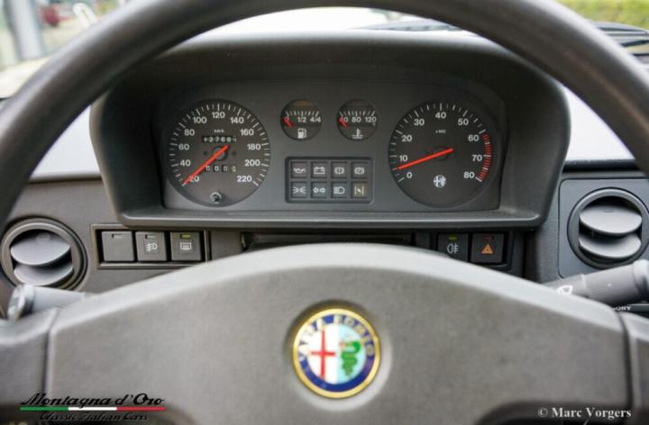 De auto is nog voorzien van een Italiaans kenteken. Vanaf nieuw heeft deze Alfa 33 Sport Wagon slechts 127.684 kilometer gereden. De automobiel verkeert in een excellente originele conditie! Alleen in het interieur zijn op het tapijt en op de hemelbekleding enkele sporen van gebruik te vinden.