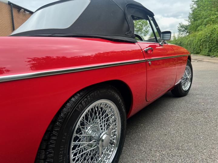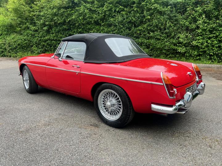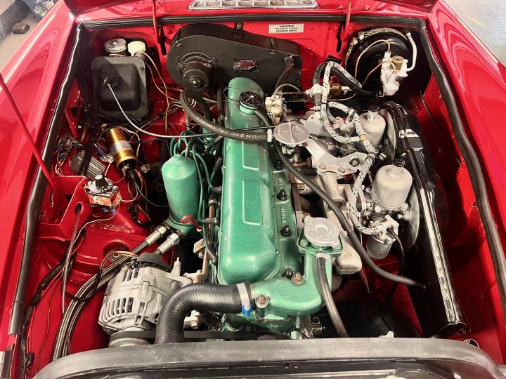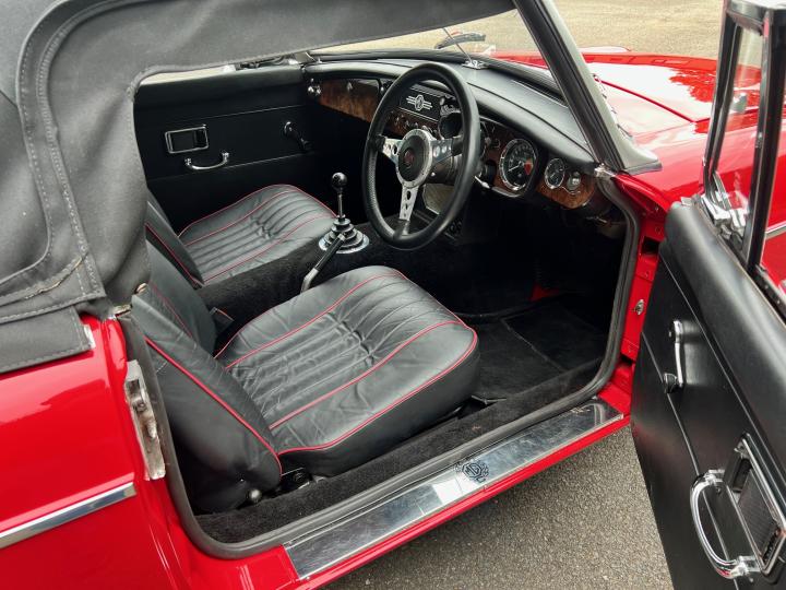 Date of registration was 01.11.1968. The car spent most of its life in the South of England with its then current owners. Painted in Tartan Red with a Black Mohair hood. The interior features black carpets, black seats piped in red and a Walnut dash. A leather rimmed Mota-lita steering wheel finishes the lovely interior. Sitting on 15″ Chrome Wire Wheels and complimented by re-chromed front and rear bumpers. The history file is thick and features MOT’s dating back to 1991 where the car had covered 14530 miles. The last MOT showed a mileage of just over 60k miles, showing little use over the last twenty years. There are invoices aplenty for servicing and parts also.