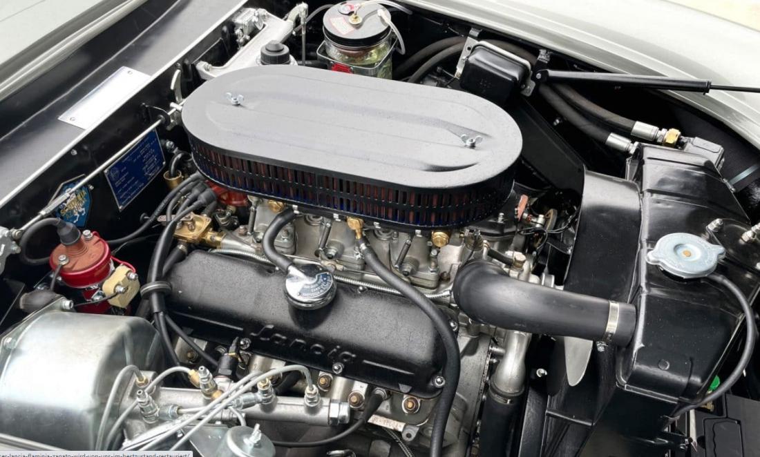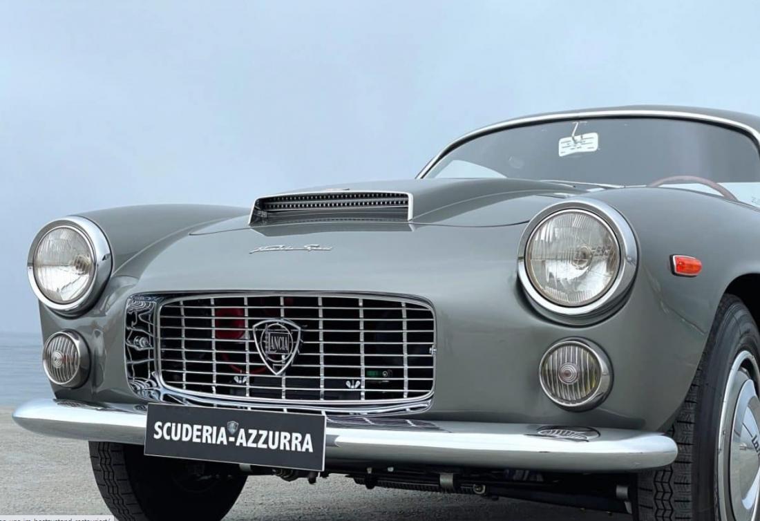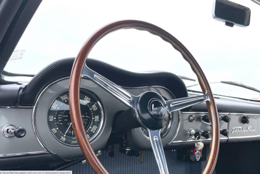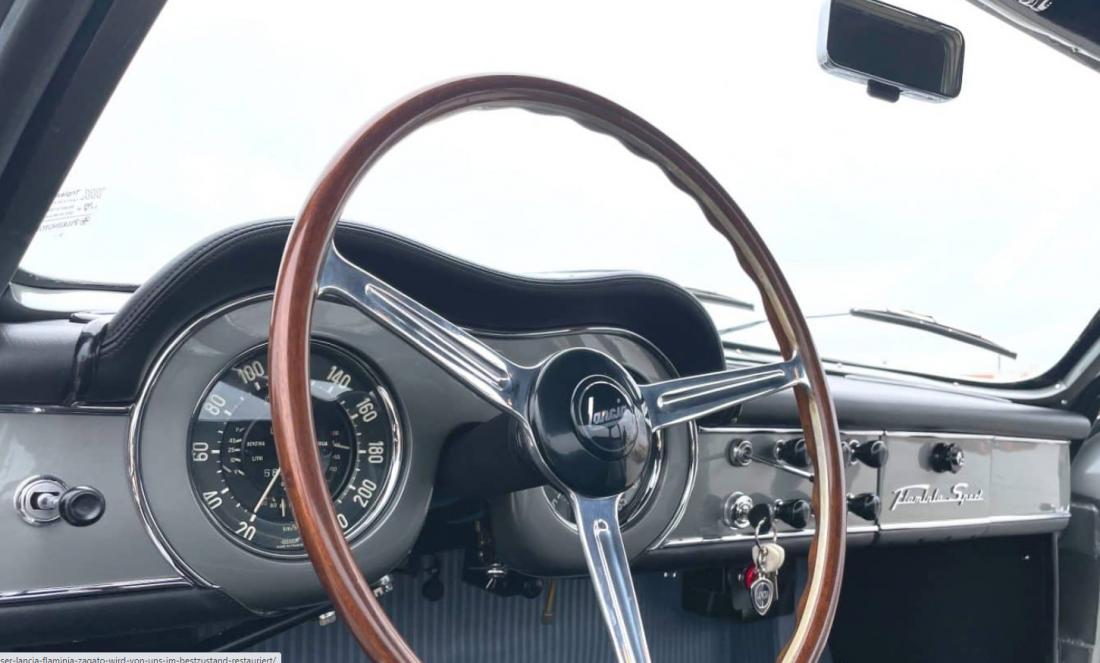 Unser Wagen stammt aus dem Baujahr 1963 und ist ausgestattet mit drei Weber Doppelvergasern (2.5L 3C). Von diesem begehrenswerten Modell wurden nur 174 Wagen produziert. Die Lancia erhält in unserer Werkstatt ihre Originalfarben zurück: eine Lackierung in der äußerst seltenen Farbe „Grigio Cascine“, passend zum perfekt erhaltenen Original-Interieur in „Pelle Nero“ das wir sehr aufwendig aufarbeiten.