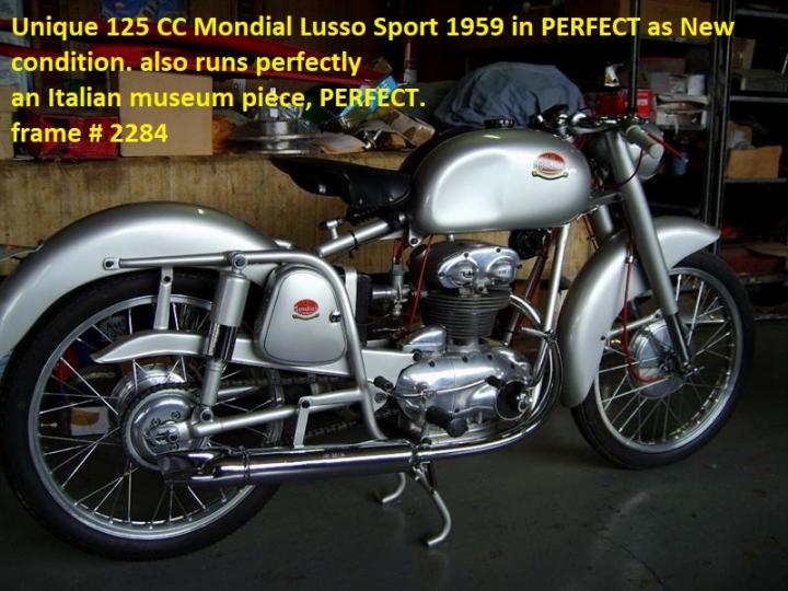 Unieke 125 CC Mondial Lusso Sport 1959 in PERFECTE als Nieuwe conditie . loopt rijdt ook perfect een Italiaans museumstuk PERFECT. Grote keus in motor- en bromfietsen in de Stolze Collectie!